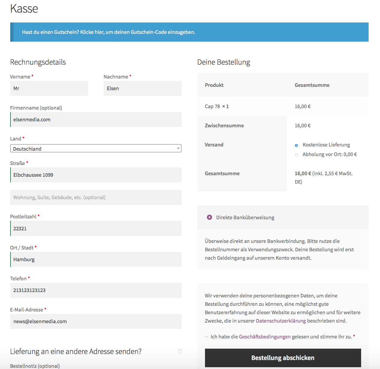 Nach der erfolgreichen Zuordnung der Steuerklasse ist das Produkt nun im Shop mit der korrekten WooCommerce Mehrwertsteuer angegeben und wird bei Berechnung im Warenkorb oder an der Kasse entsprechend mit ausgewiesener Mehrwertsteuer angezeigt.